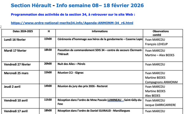 ANMONM 34 - info semaine 07 - 2026