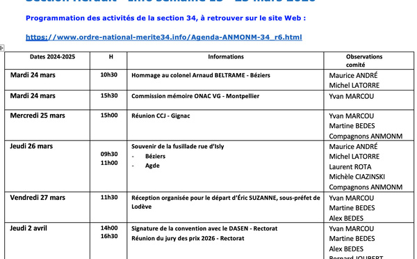ANMONM 34 - Info semaine 12 - 2026